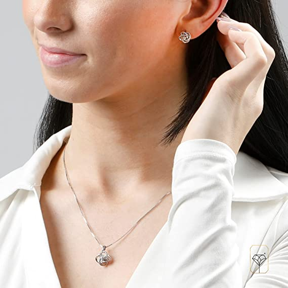 1/4 Carat Natural Diamond Love Knot Stud Earrings and Pendant Necklace for Women in 925 Sterling Silver (I2-I3, 0.25 cttw) Diamond Jewelry Set by MAX + STONE